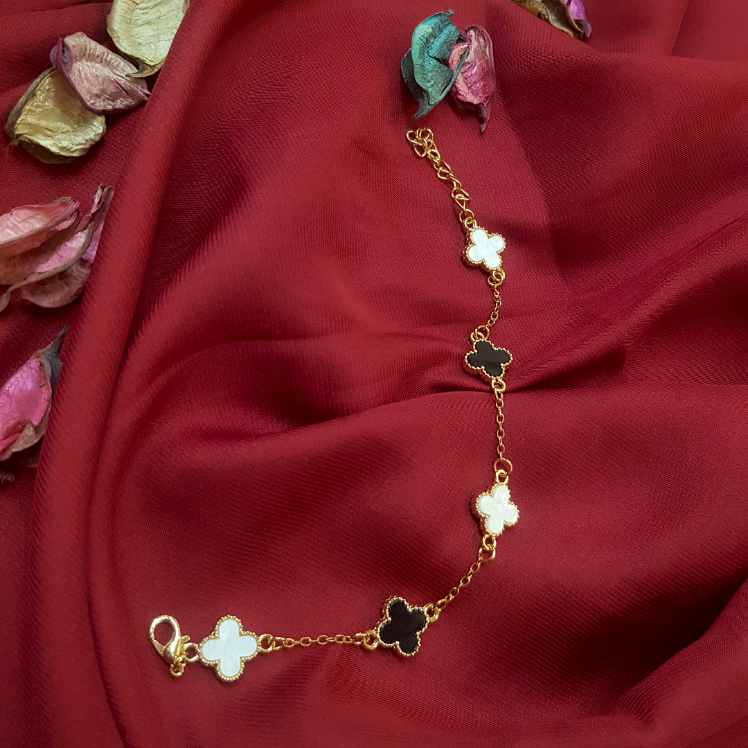 Embrace elegance and good fortune with this Four-Leaf Clover Bracelet, featuring striking black and white enamel accents. Stay effortlessly stylish with this Trendy Fashion Bracelet, designed to keep up with the latest looks. With its sleek design, modern detailing, and comfortable fit, itโ€™s the perfect accessory to elevate your daily outfit or add a touch of flair to your night-out look. this durable bracelet adds a refined touch to your everyday or special-occasion outfits.