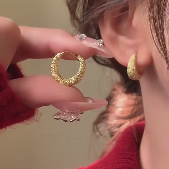 1 Pair Elegant Frosted Hoop Earrings – Golden Shine with a Sophisticated Touch
