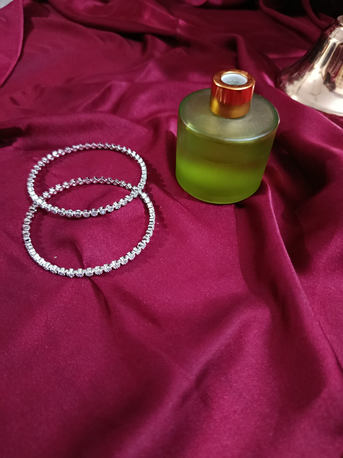 2Pc Silvery Rhinestone Zirconia Bangles