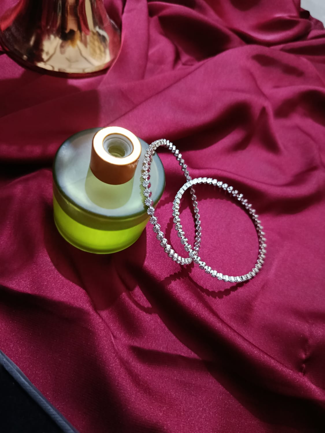 Includes 2 matching silvery rhinestone zirconia bangleÂ