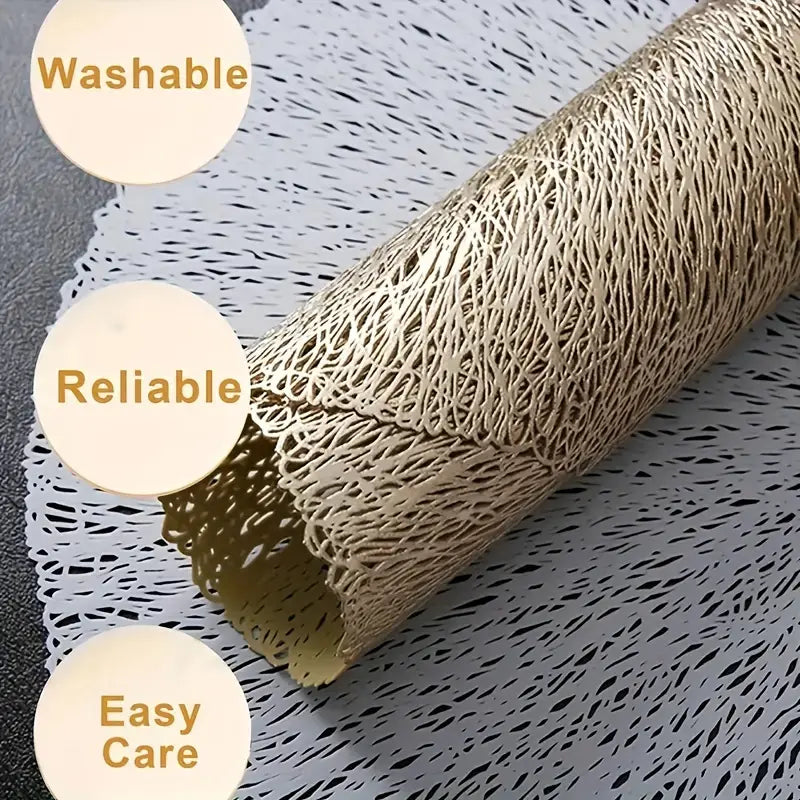 đ˝ď¸ Add a touch of elegance to your dining experience with this 6-piece set of Round Hollow Flower PVC Placemats. Designed with intricate floral cutouts, these placemats are not only visually stunning but also practical. Made from durable PVC, they are heat-resistant, washable, and reusableâperfect for both everyday use and special gatherings. Easy to clean and quick to dry, they help protect your table while elevating your decor.